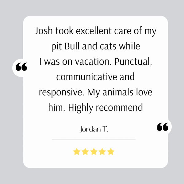 After 16 years as equipment manager of a top-rated golf course, Josh decided to use his love of animals and talent of understanding their temperament to bring forth a pet and farm sitting service that can bridge his passion for animal care with helping his clients rest assured that their animals are receiving the best possible care while they are away.